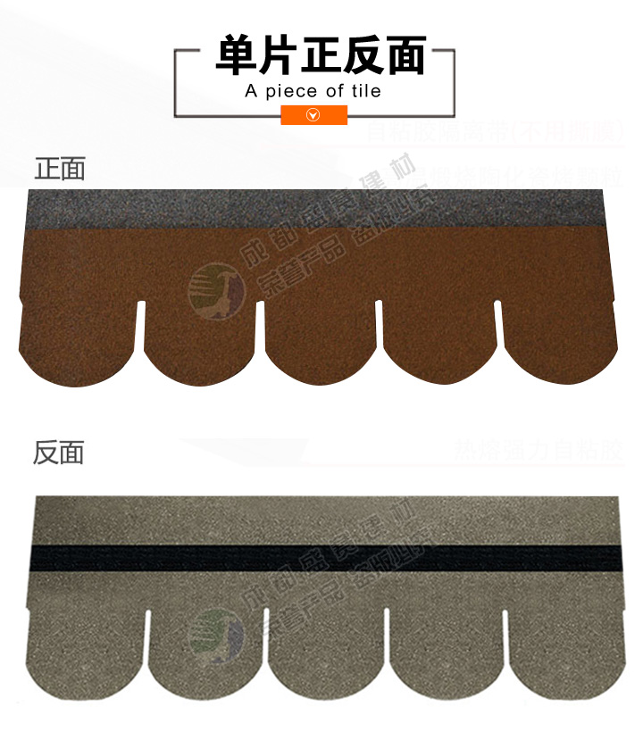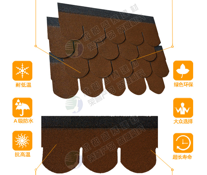 产品名称:鱼鳞型 产品规格:单层 产品颜色:棕褐色 长度(mm):1000mm±3 mm 包装:每包21片