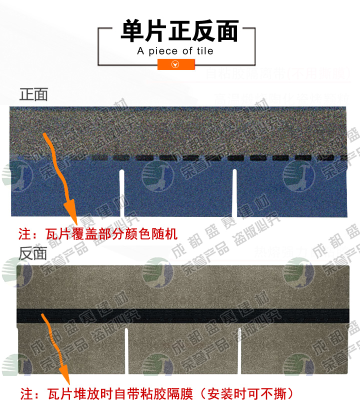本款产品颜色丰富,立体感强,一般适用于广泛应用于高档别墅、高档小区、政府安置工程,学校工程等工程,产品可自由裁剪,能成功覆盖于不同形状和不同基层的屋顶。适用屋面坡度从15°到90°不同建筑。