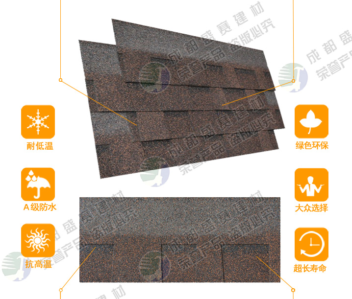 本款产品颜色丰富,一般适用于广泛应用于高档别墅、高档小区等工程,产品可自由裁剪,能成功覆盖于不同形状和不 同基层的屋顶。适用屋面坡度从15°到90°不同建筑。