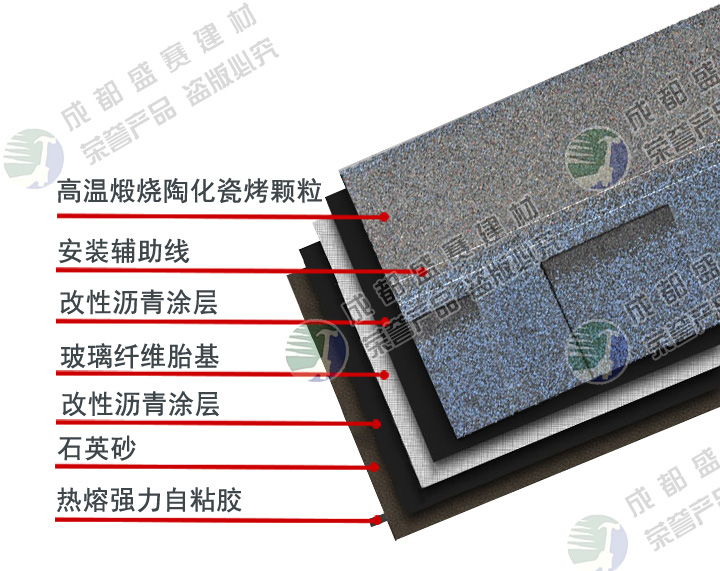 包装:每包16片宽度(mm):340mm 厚度(mm): 5.2mm 重量(kg/m2):每包28KG±1KG 每平方米所需瓦片(片):6.8片