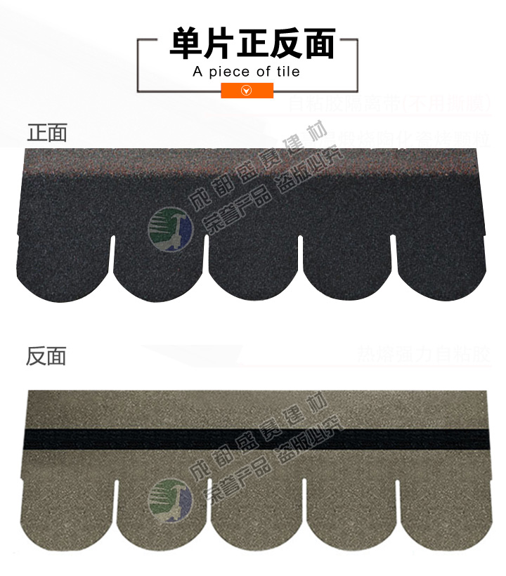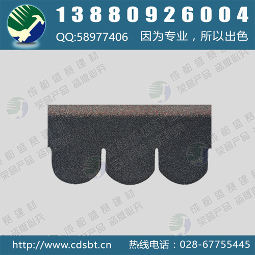 本款产品颜色丰富,安装效果细腻,立体感强,一般适用于广泛应用于高档别墅、高档小区、尖塔等工程,产品可自由裁剪,能成功覆 盖于不同形状和不同基层的屋顶。适用屋面坡度从15°到90°不同建筑。